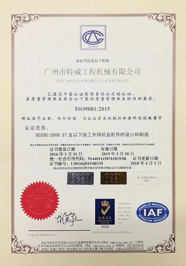 廣州市特威工程機(jī)械有限公司地處廣州市白云區(qū)神山鎮(zhèn),廣清高速神山出口附近,是一家施工升降機(jī)的專業(yè)生產(chǎn)廠家。公司成立于2011年,占地100000多平方米,注冊(cè)資金1060萬(wàn)元,現(xiàn)有員工300余人其中工程技術(shù)人員33人,高級(jí)技術(shù)人員52人。